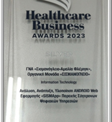 Βραβεύτηκε με SILVER Βραβείο στην κατηγορία «Αποτελεσματική Διοίκηση Κλινικής Δημοσίου Νοσοκομείου»