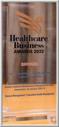 Healthcare Business Awards 2022: BRONZE Βραβείο στην κατηγορία «Disease Management/Population Health Management» με τίτλο: «Οργανική Μονάδα "Σισμανόγλειο" / Ταχεία οργάνωση, ανάπτυξη και ασφαλής λειτουργία της Μονάδας Χορήγησης Μονοκλωνικών Αντισωμάτων στο πλαίσιο αντιμετώπισης της λοίμωξης COVID-19» |